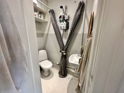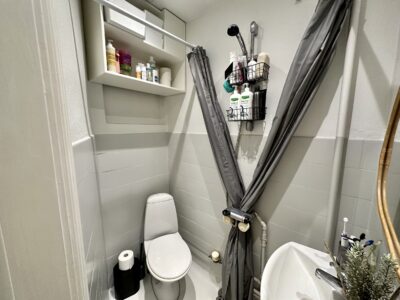 Velkommen til denne imponerende 2-værelses lejlighed, der emmer af komfort og stil. Ved ankomst mødes du af en rummelig entré, der straks leder dig videre til det stilfulde badeværelse. Her venter en forfriskende bruseløsning og en atmosfære af moderne bekvemmelighed.