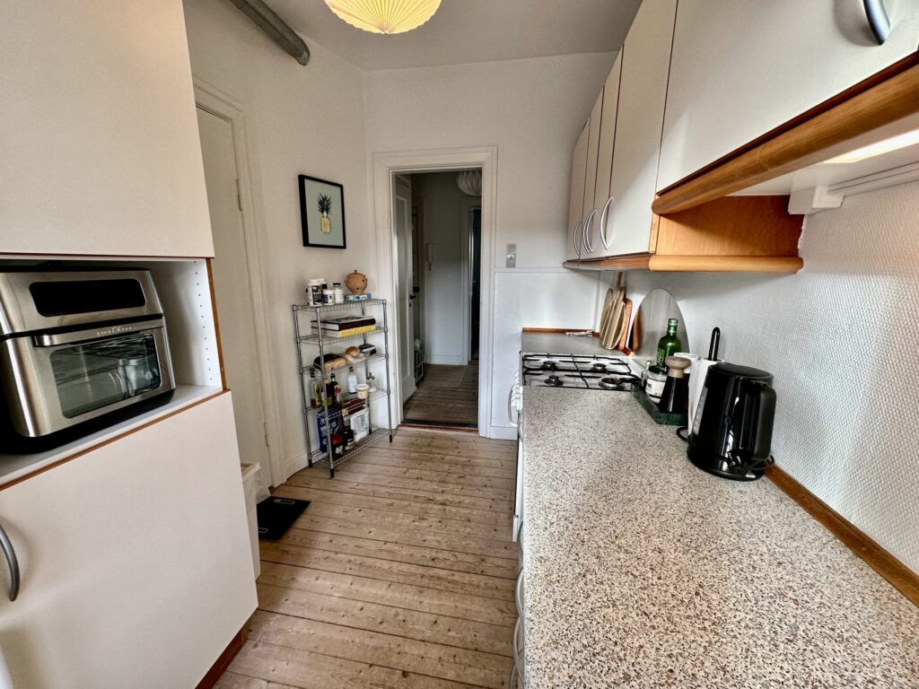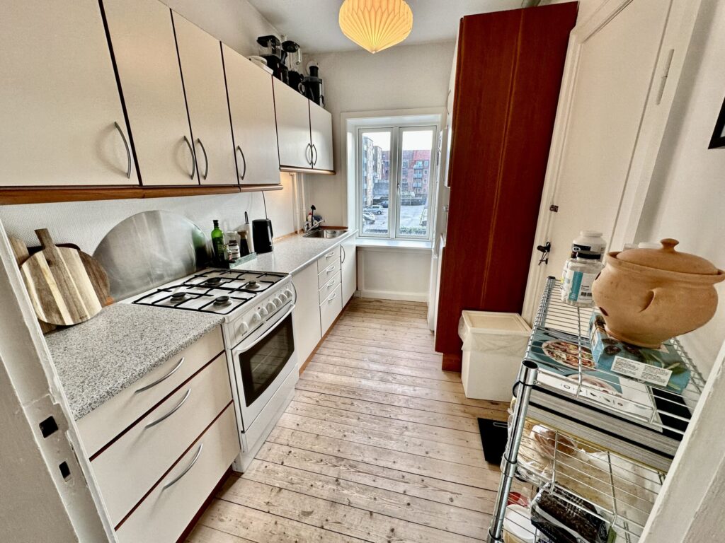 Det flot vedligeholdte hvide køkken indbyder til gastronomiske eventyr og fungerer som hjertet i boligen. Det tilbyder ikke kun funktionalitet, men også æstetisk appel.