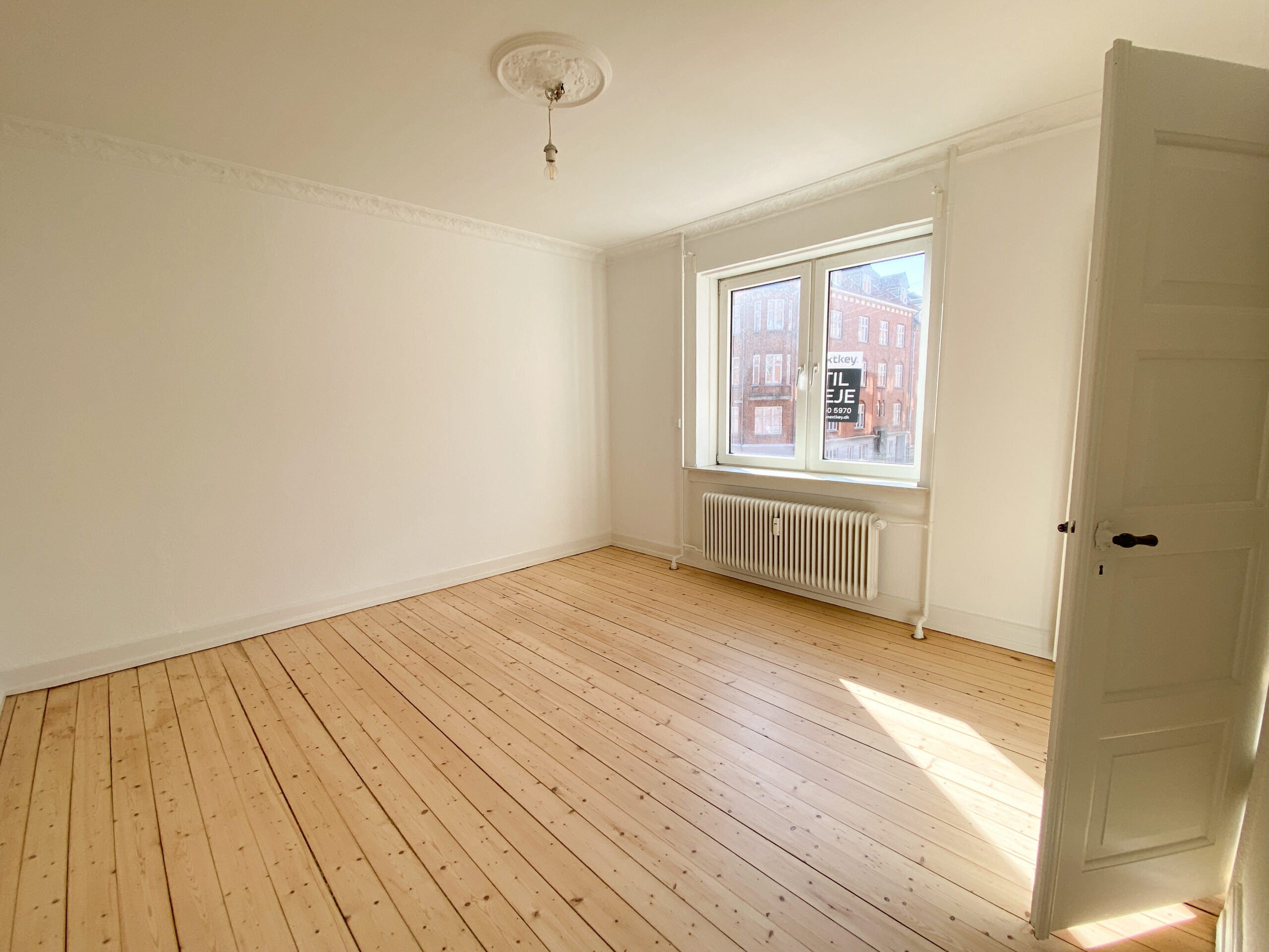 Velkommen til denne rummelige 3-værelses lejlighed, hvor komfort og lysfyldte rum går hånd i hånd. Trægulvene skaber en varm atmosfære, der strækker sig gennem de to stuer og giver dig mulighed for at lade din kreativitet flyde frit, når du indretter.