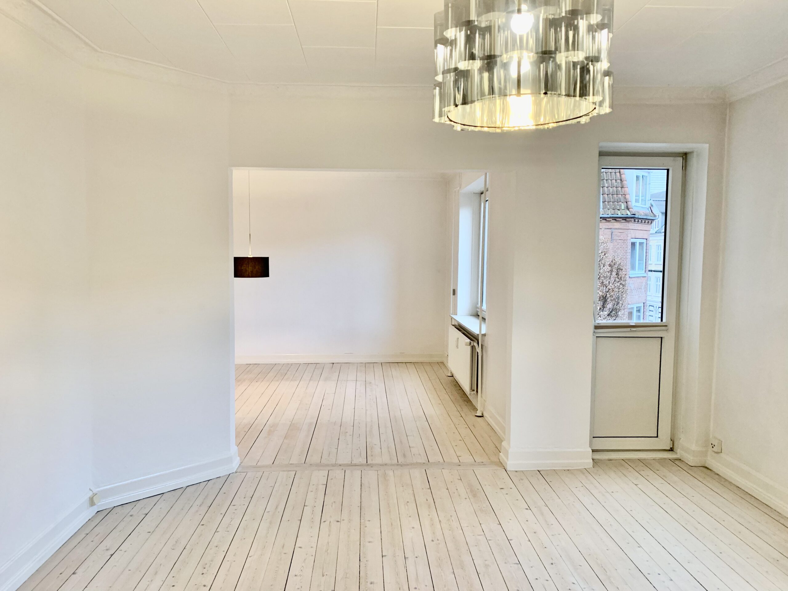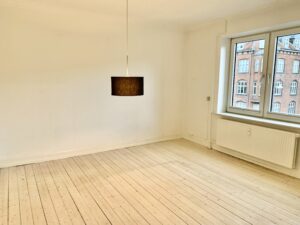 Velkommen til denne rummelige 3-værelses lejlighed, hvor komfort og lysfyldte rum går hånd i hånd. Trægulvene skaber en varm atmosfære, der strækker sig gennem de to stuer og giver dig mulighed for at lade din kreativitet flyde frit, når du indretter.