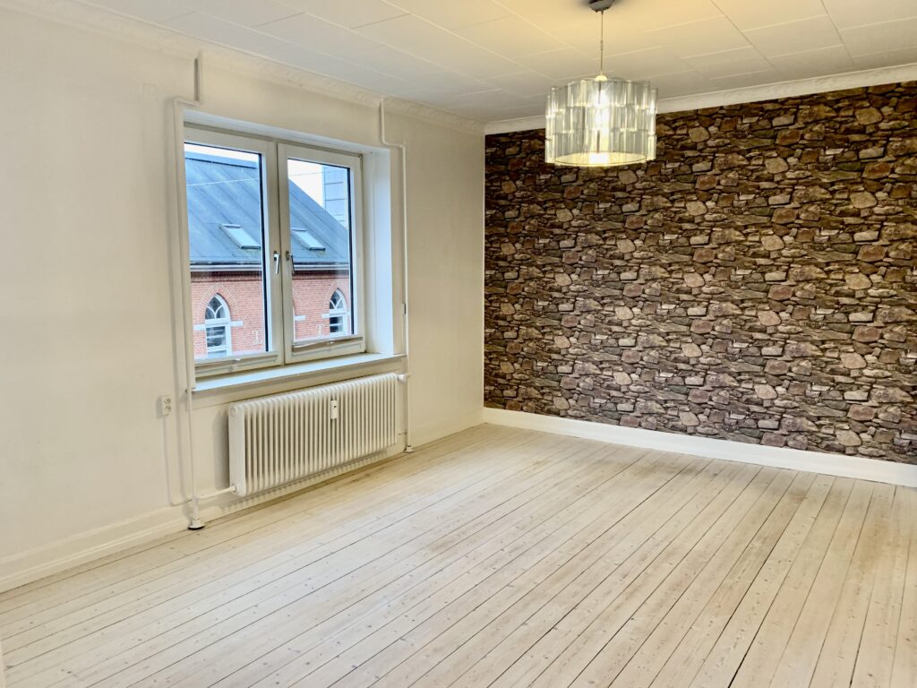 De to store stuer i denne lejlighed giver dig masser af plads til at indrette med store møbler og skabe din egen unikke oase. Her er en enestående mulighed for at skabe et hyggeligt hjem med masser af personlighed.