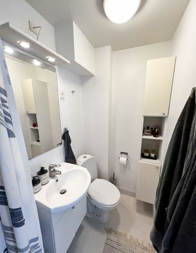 Køkkenet er pænt og funktionelt med plads til at lave alt fra små måltider til større middage. Badeværelset, som ligeledes er praktisk indrettet, har en bruseplads og alt, hvad du har brug for i det daglige.