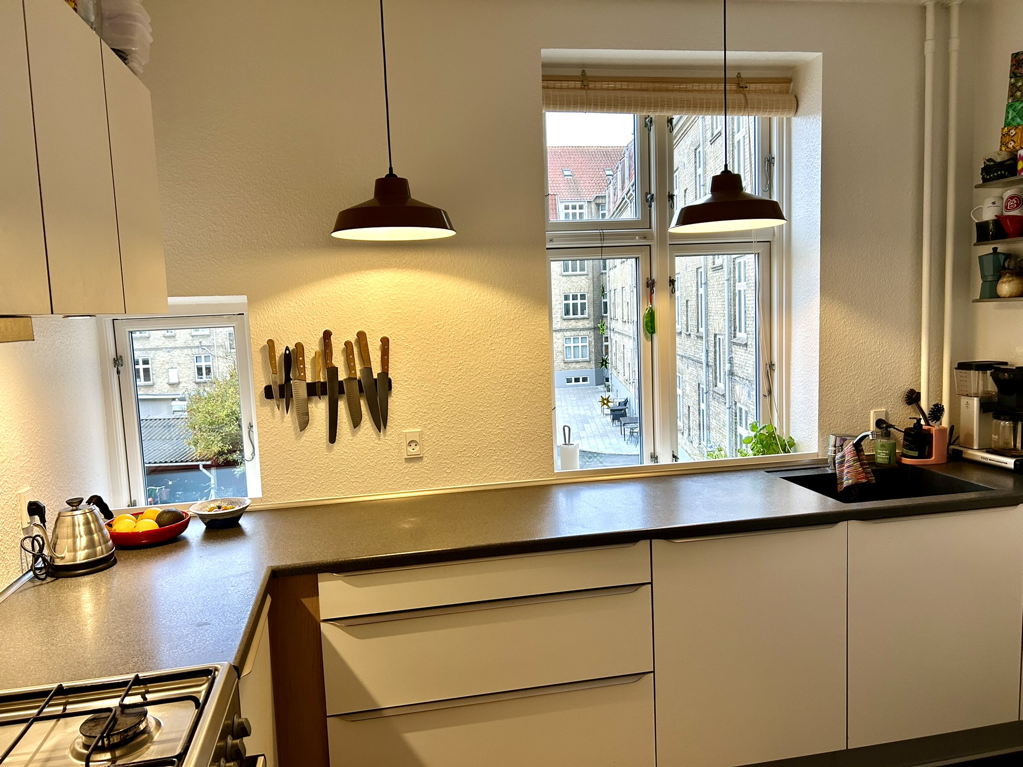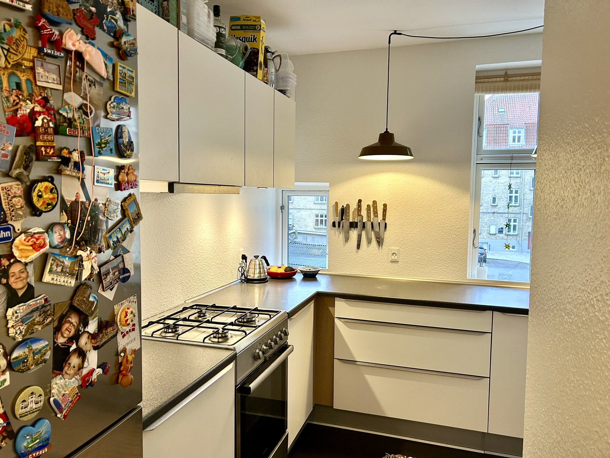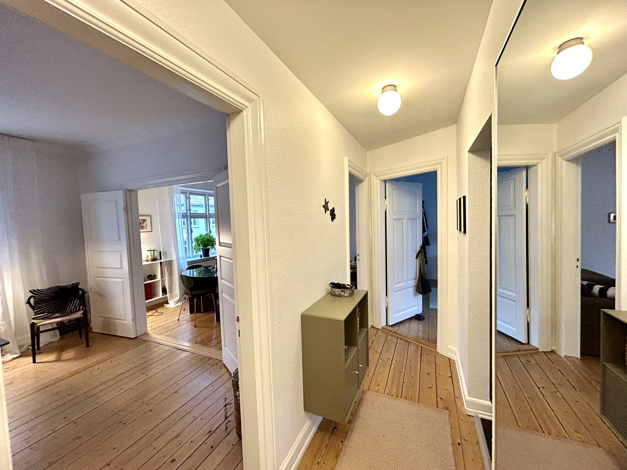 Lejligheden fremstår rigtig flot med lækkert lyst køkken med masser skabs- og bordplads og et pænt badeværelse med brus. Dejligt stort soveværelse samt 2 store og lyse stuer en suite.