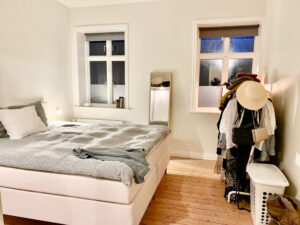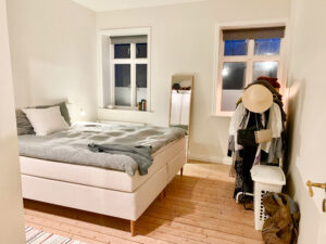 Soveværelset er rummeligt og tilbyder tilstrækkelig plads til alle nødvendigheder og mere til, mens det sidste værelse giver alsidige muligheder som enten et kontor eller et hyggeligt børneværelse, der passer perfekt til begge formål.