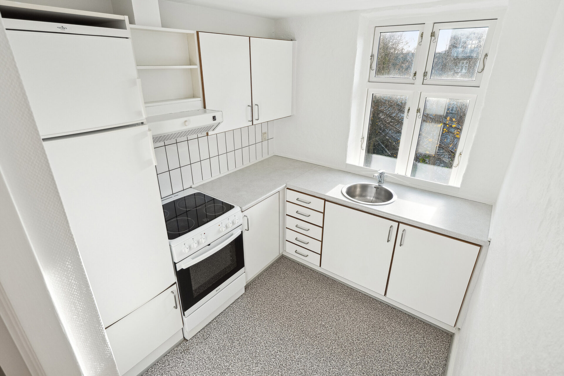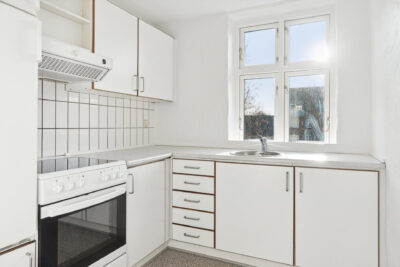 Lejligheden er hvidt køkken. Der er installeret følgende hårde hvidevarer: