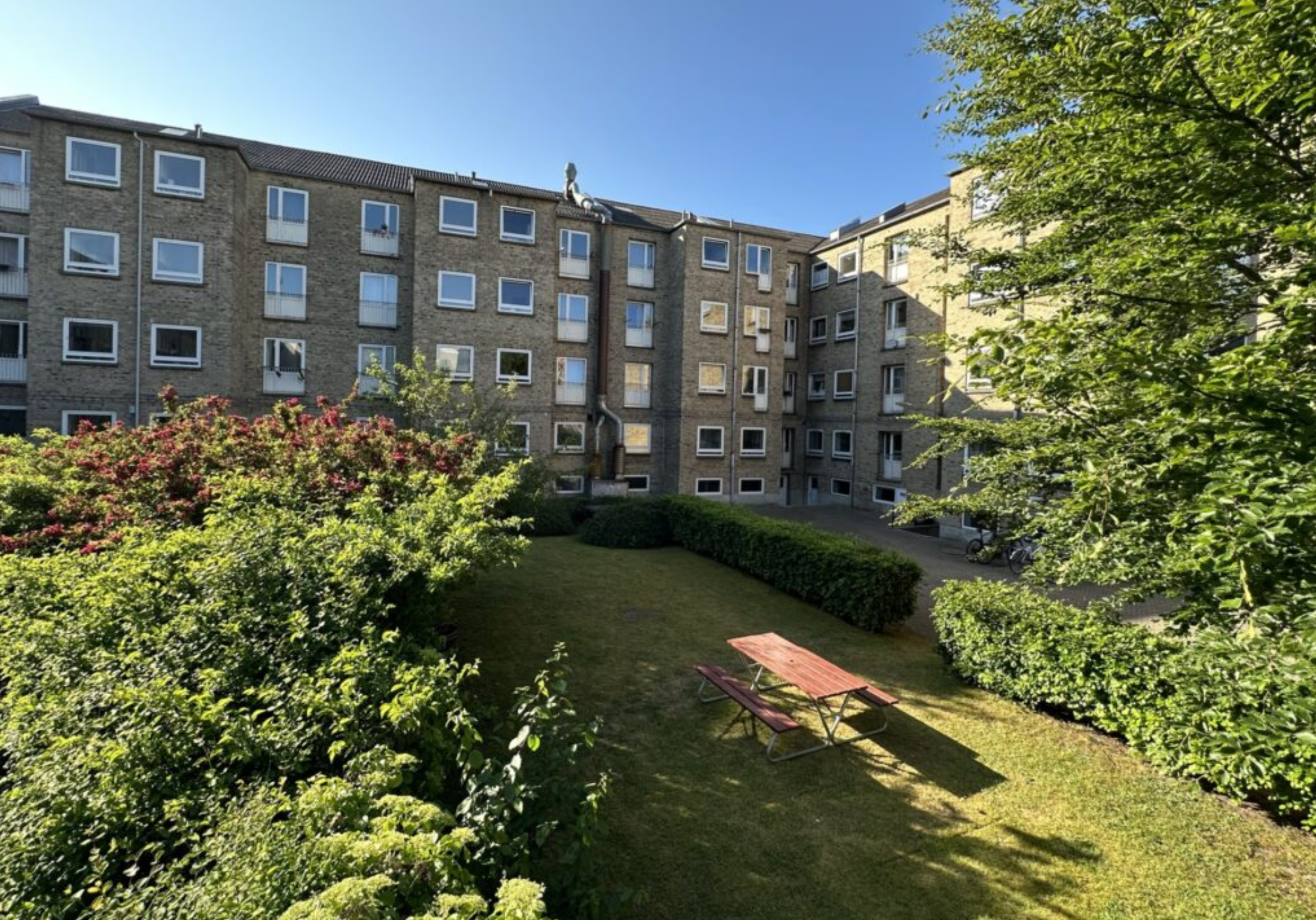 Lejligheden ligger i en flot ejendom med en hyggelig fælles gårdhave, fælles vaskekælder, tørrerum og cykelkælder. Herudover er der mulighed for at leje en garage i gården. Området byder desuden på gode parkeringsmuligheder.