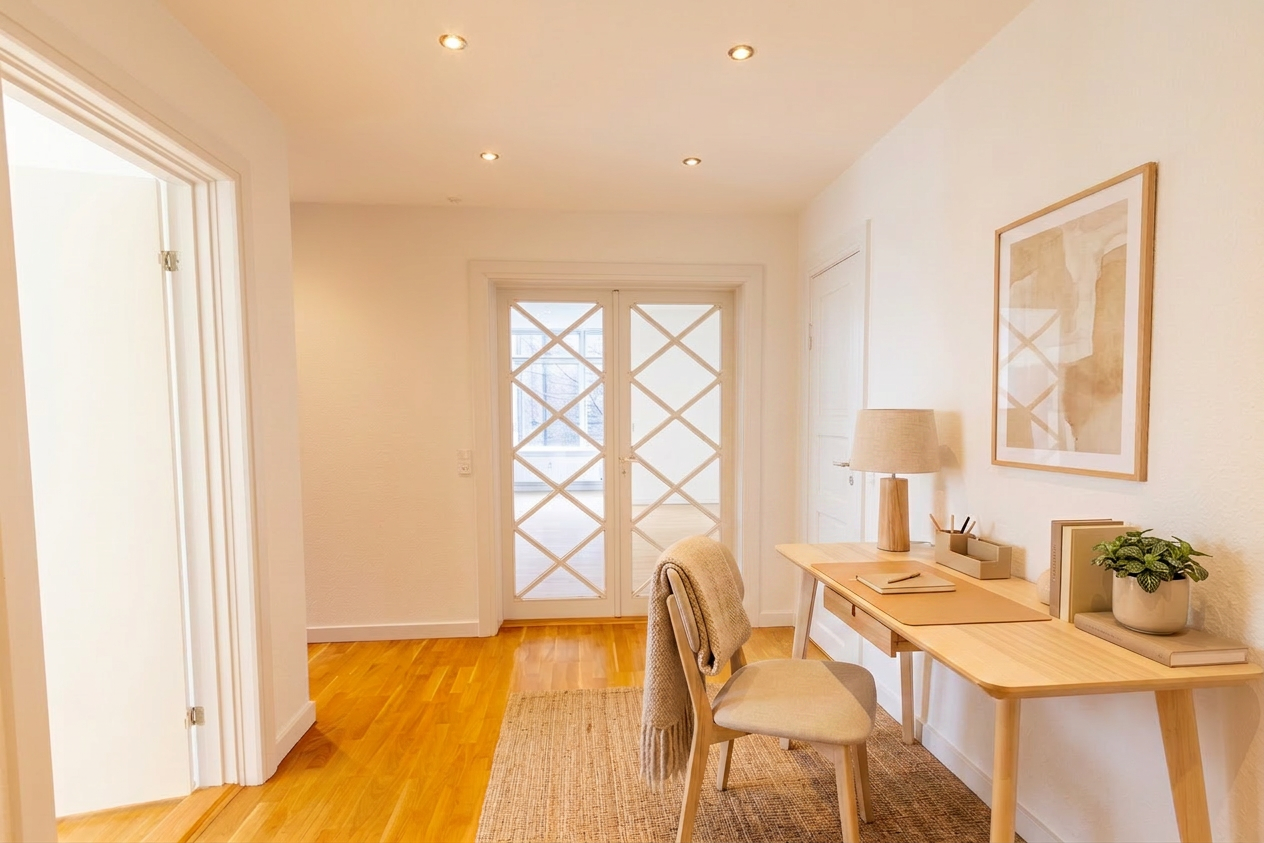 Velkommen til denne lejlighed hvor lys og moderne design møder den pulserende atmosfære i Aalborgs centrum. En indflytningsklar bolig med en behagelig atmosfære.