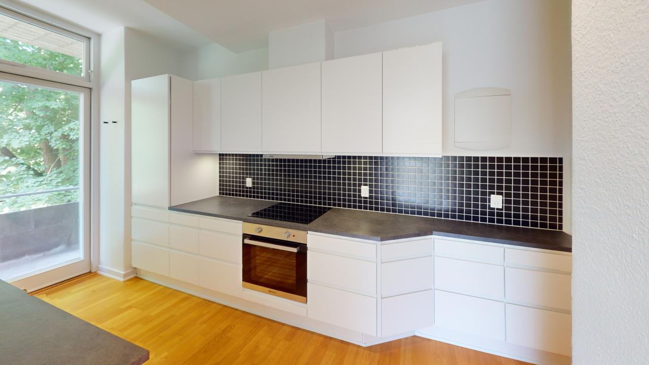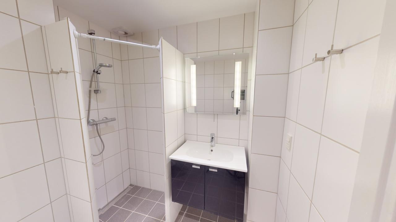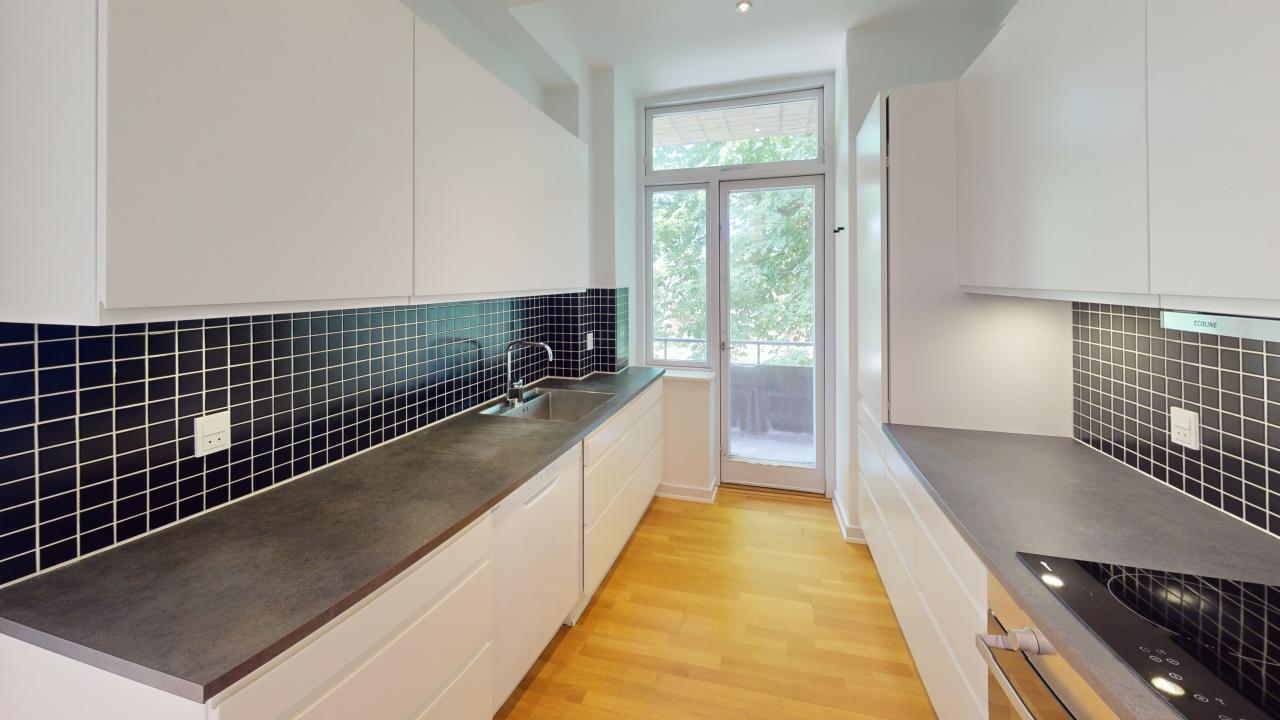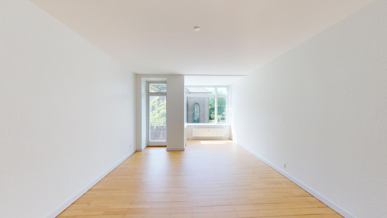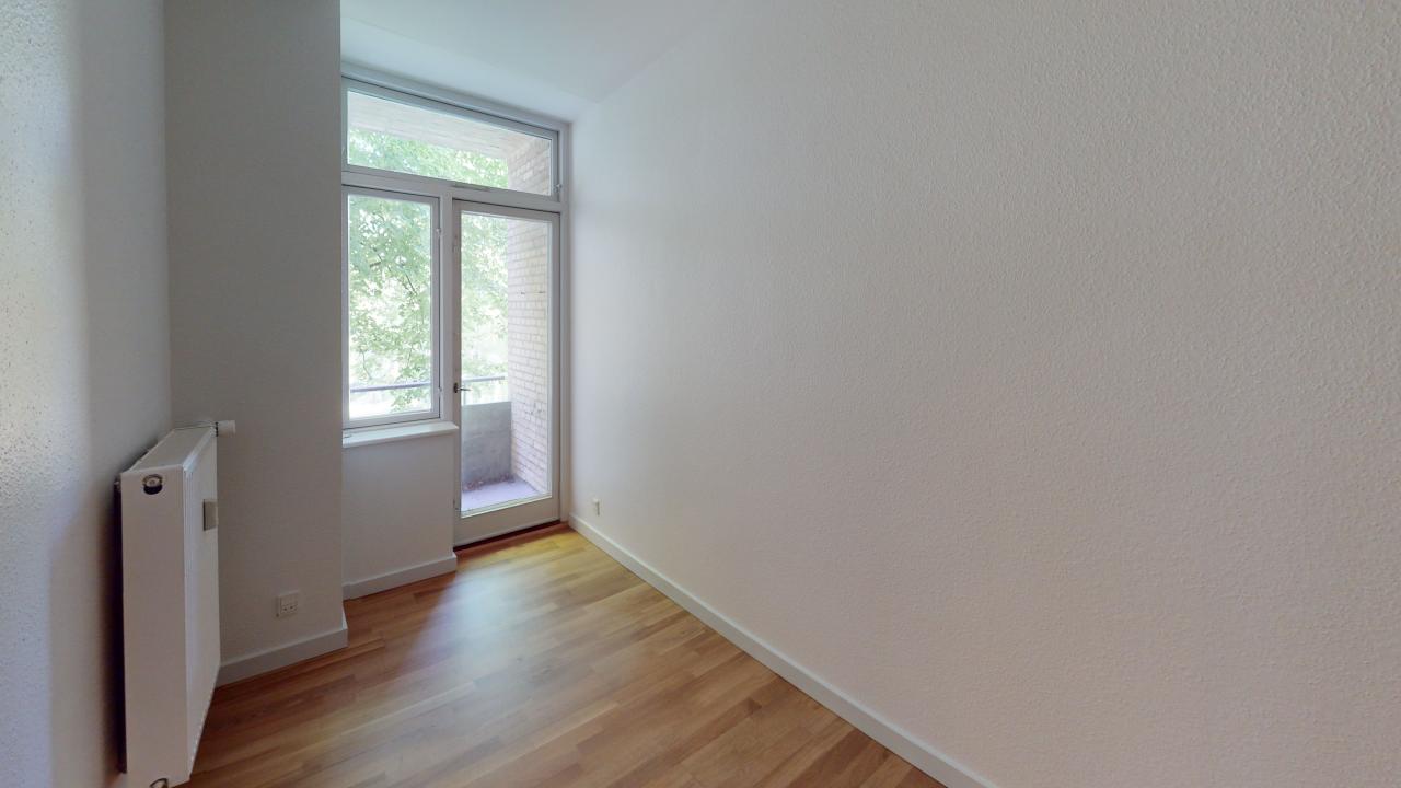 Lejligheden byder på fem værelser, der skaber en rummelig og indbydende stemning. De store vinduer lader lyset strømme ind og giver en skøn udsigt over området. Her er plads til både afslapning og samvær, og de åbne rum giver mulighed for at indrette efter egne ønsker. Det veludstyrede køkken er ideelt til madlavning med venner og familie, og badeværelset er funktionelt og praktisk indrettet.