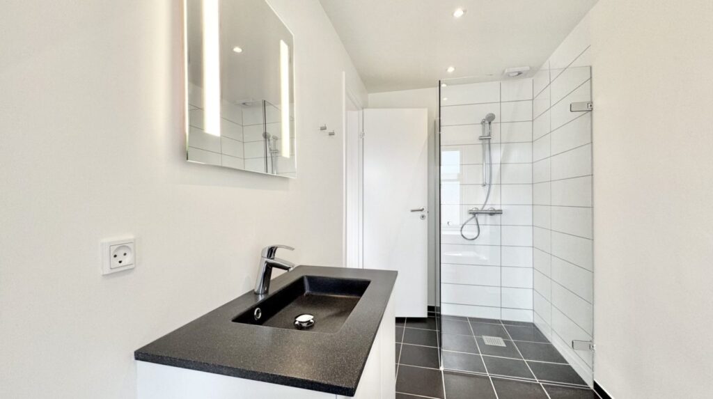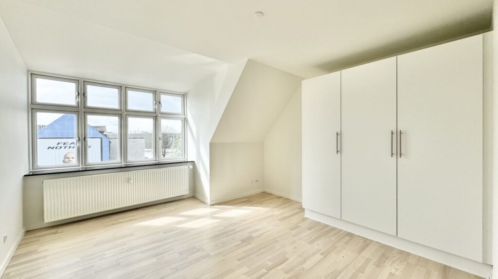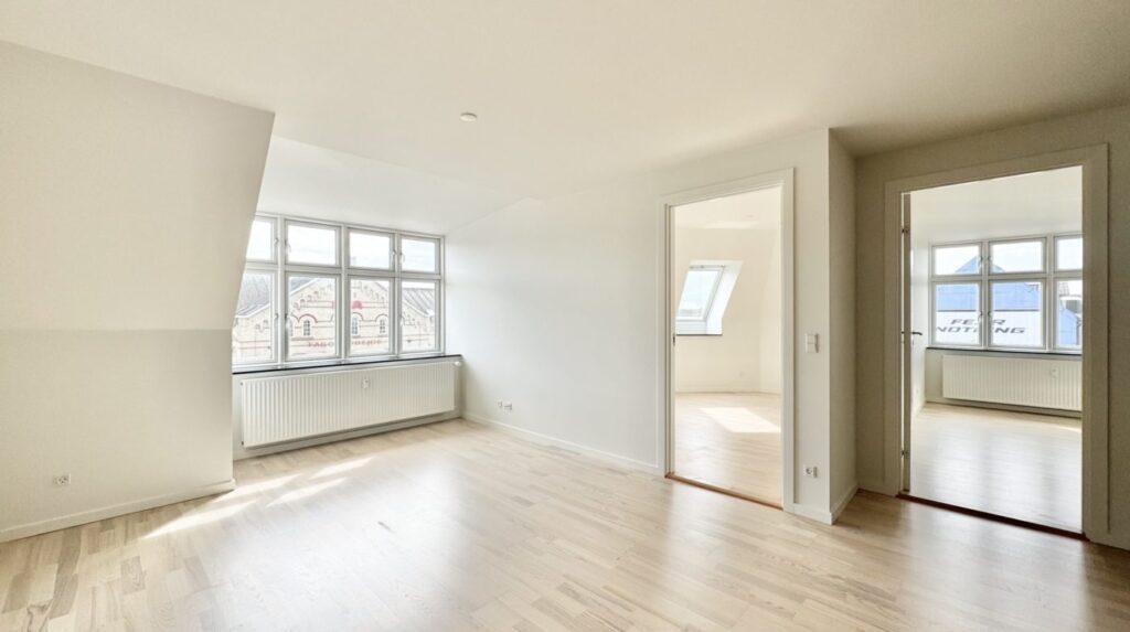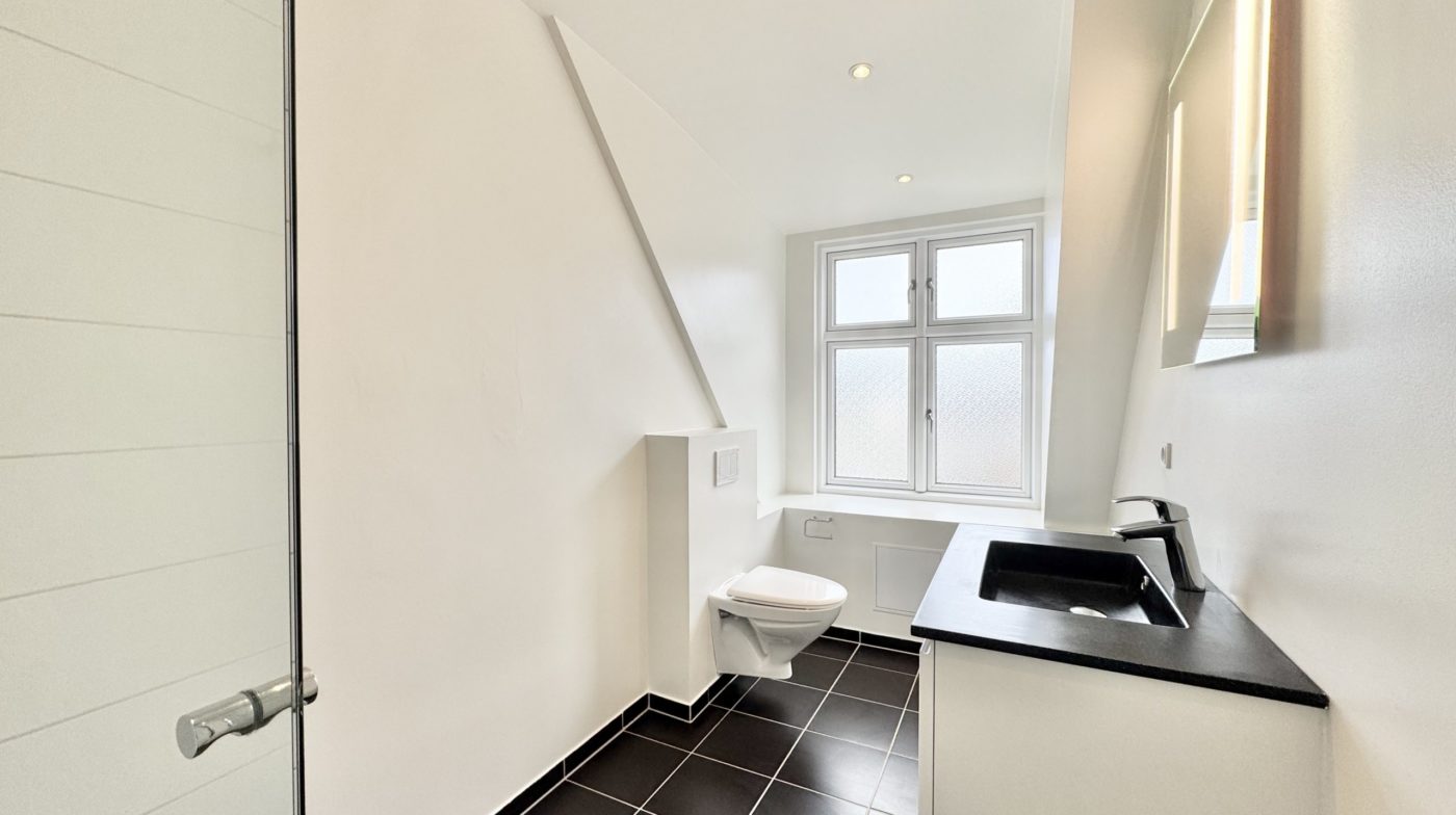 Derudover får du to rummelige soveværelser og et lækkert, nyrenoveret badeværelse med bruseniche, væghængt toilet og stilrene klinker.
