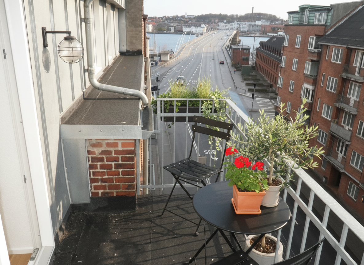 Lejligheden byder på fire velindrettede værelser, der skaber en indbydende stemning. Her er masser af naturligt lys, der strømmer ind fra de store vinduer, og fra stuen har du direkte adgang til den fantastiske altan med udsigt over fjorden. Det stilrene køkken er udstyret med moderne faciliteter og gør madlavningen til en fornøjelse, mens det opdaterede badeværelse sikrer komfort i hverdagen. Den gennemtænkte planløsning gør lejligheden ideel som delebolig, perfekt for flere beboere, der ønsker at bo centralt.