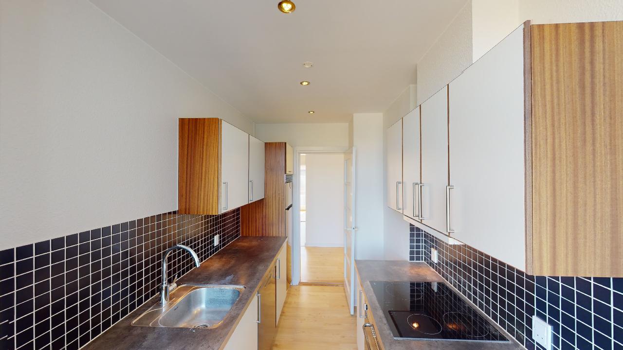 Køkkenet er praktisk indrettet med moderne faciliteter og gode arbejdsflader, hvilket gør madlavningen til en fornøjelse. Badeværelset er funktionelt med de nødvendige installationer, hvilket understøtter den daglige komfort. Boligen fremstår velholdt og nymalet, klar til at tage imod sine nye beboere.