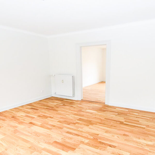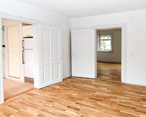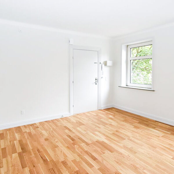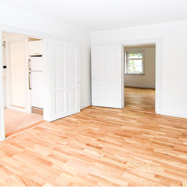 Soveværelset er stort og rummeligt, og også her finder du det nye egeparketgulv, som giver et moderne og ensartet udtryk i hele boligen.