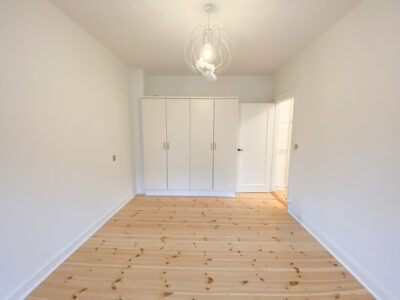 Soveværelset har en behagelig størrelse og rummer både en dobbeltseng, et skrivebord og et stort klædeskab. Fra soveværelset er der desuden udgang til en vestvendt altan, hvor du kan nyde eftermiddags- og aftensolen.