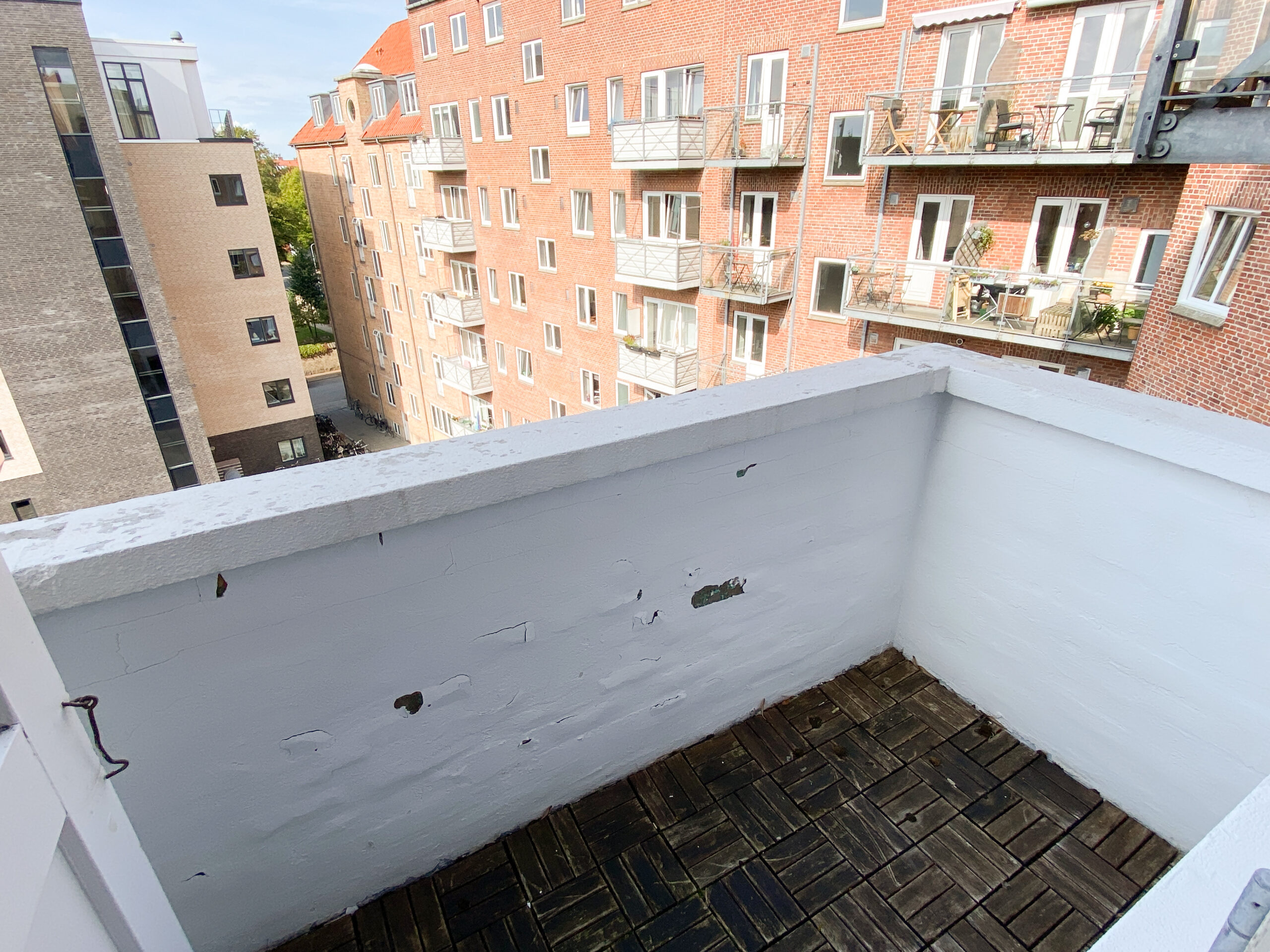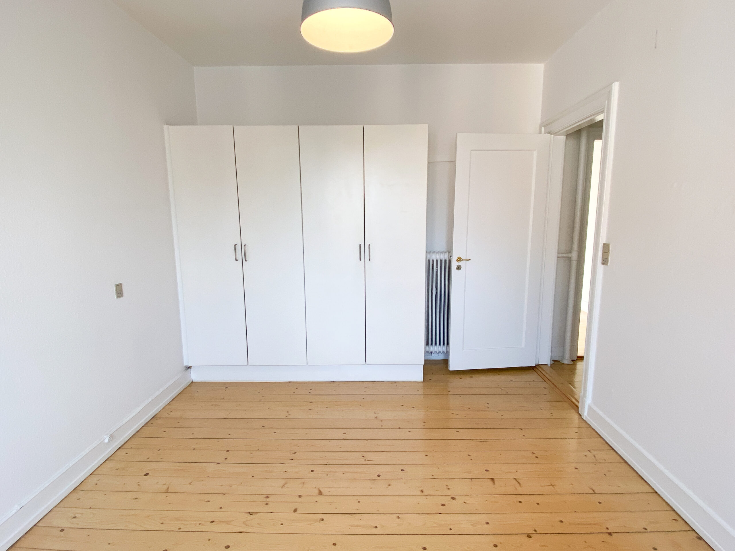 Soveværelset har en behagelig størrelse og rummer både en dobbeltseng, et skrivebord og et stort klædeskab. Fra soveværelset er der desuden udgang til en vestvendt altan, hvor du kan nyde eftermiddags- og aftensolen.