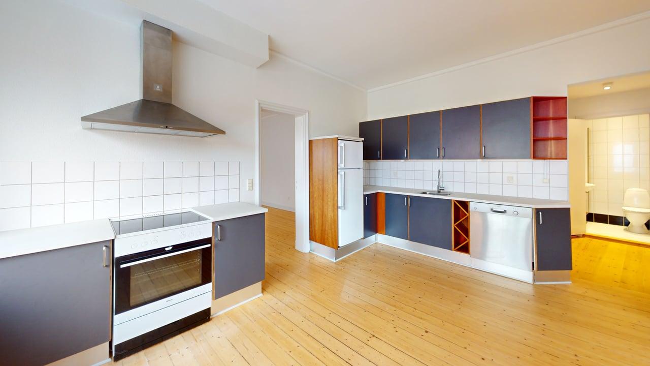 Lejligheden byder på to rummelige værelser, der giver mulighed for både afslapning og kreativ udfoldelse. Den åbne stue skaber en indbydende ramme for sociale sammenkomster, mens de store vinduer lader dagslyset strømme ind og skaber en lys og luftig atmosfære. Her kan du nyde hyggelige stunder med venner og familie.