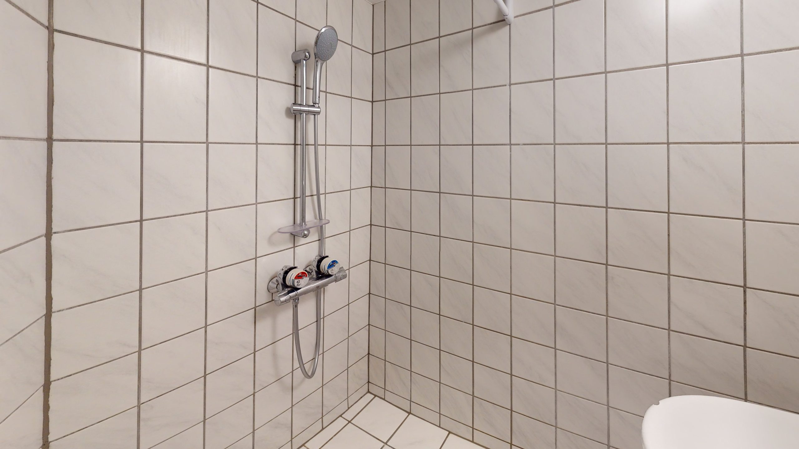 Lejligheden byder på en rummelig fordelingsgang, som fører til et stort og lyst køkken med god plads til fælles måltider. De tre store værelser giver mulighed for privatliv og personlig indretning, mens badeværelset og wc med håndvask er praktisk placeret. Her er elevator tilgængelig, hvilket gør det nemt at komme op til 5. sal.