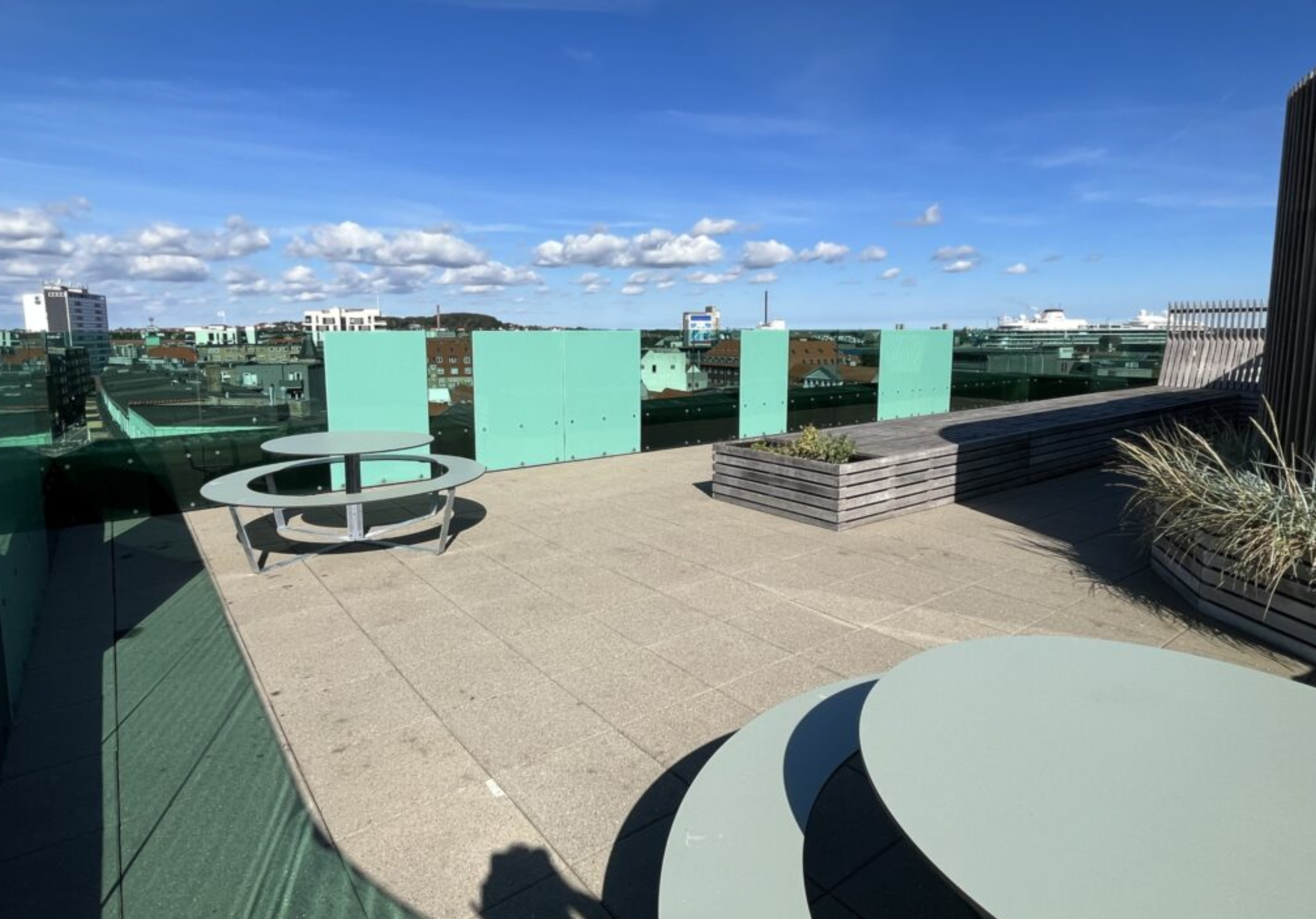 Der er brugsret til én af byens bedst beliggende tagterrasser med smuk udsigt over Aalborg og omegn. Der er ligeledes brugsret til fælles gasgrill på tagterrassen. Der er godt tremmerum i kælderen. En lejlighed, der skal ses.