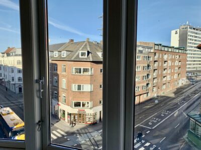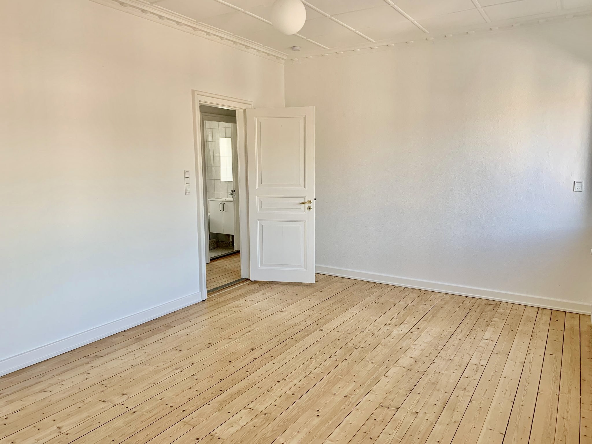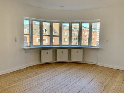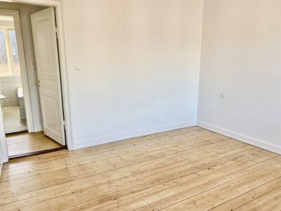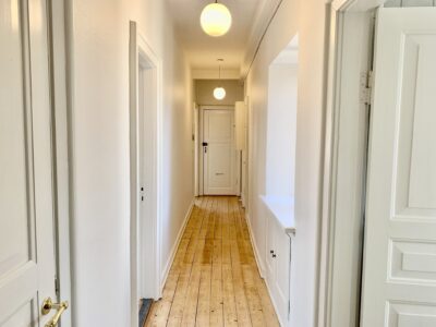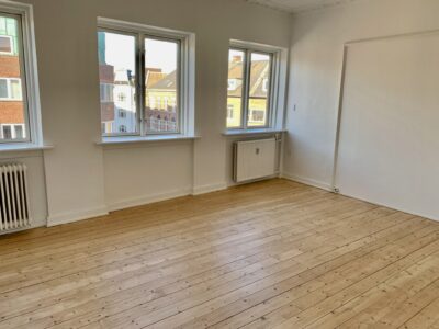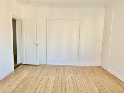 Denne flotte lejlighed er virkelig et eksempel på hyggelige herskabelige lejligheder i Aalborg. Lejligheden er nyrenoveret med nyslebne og lakerede gulve, nyt køkken og badeværelse.