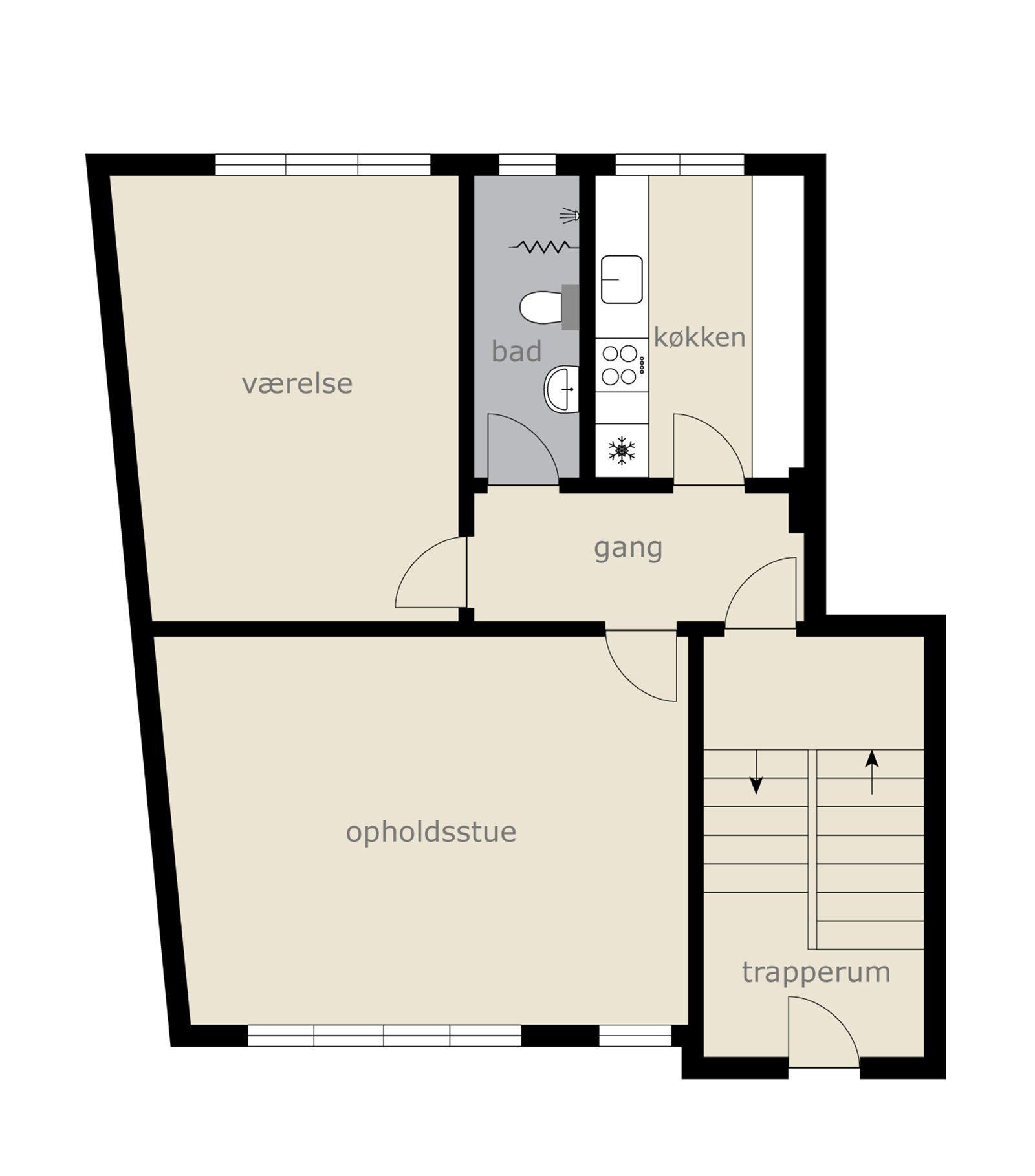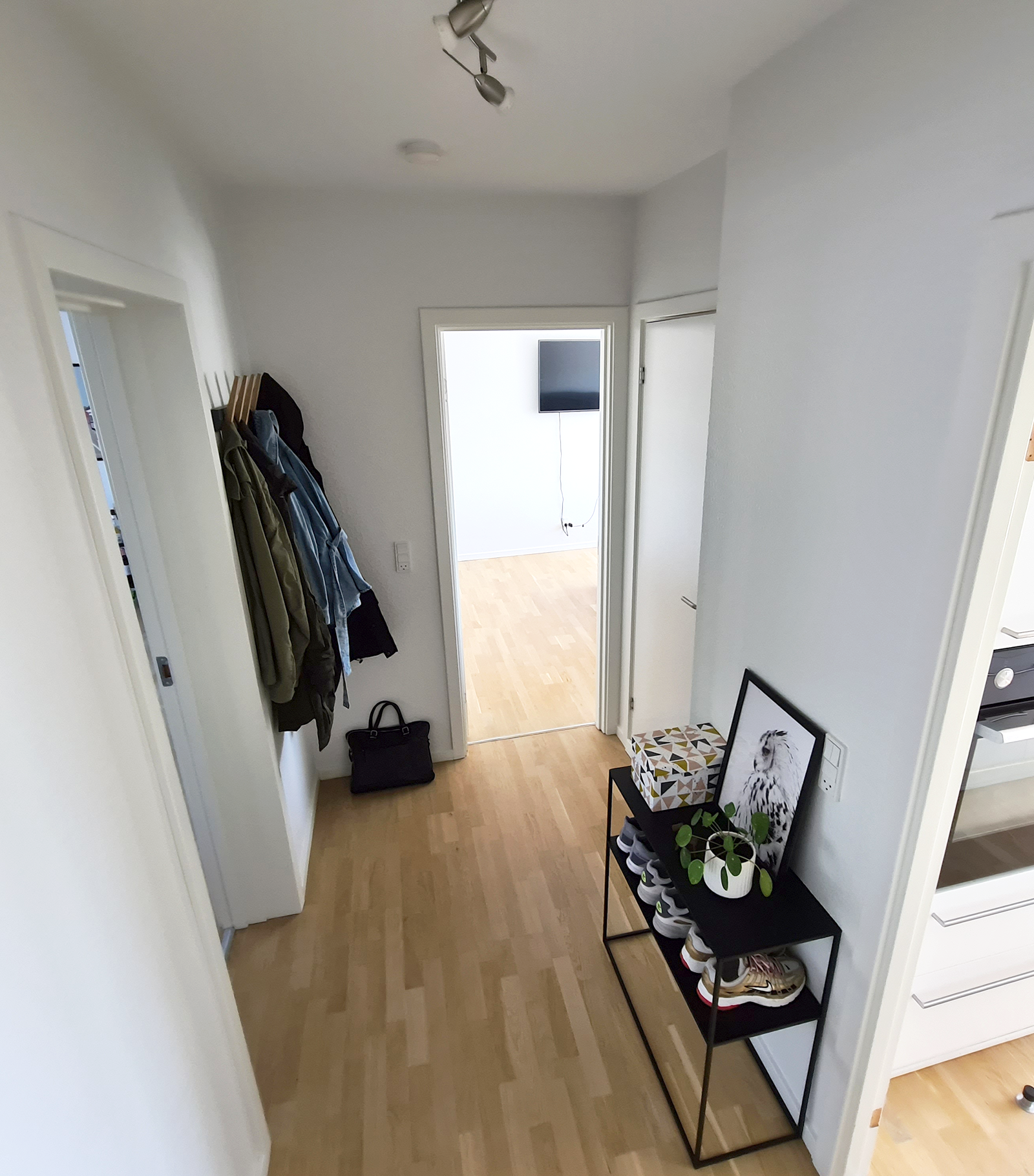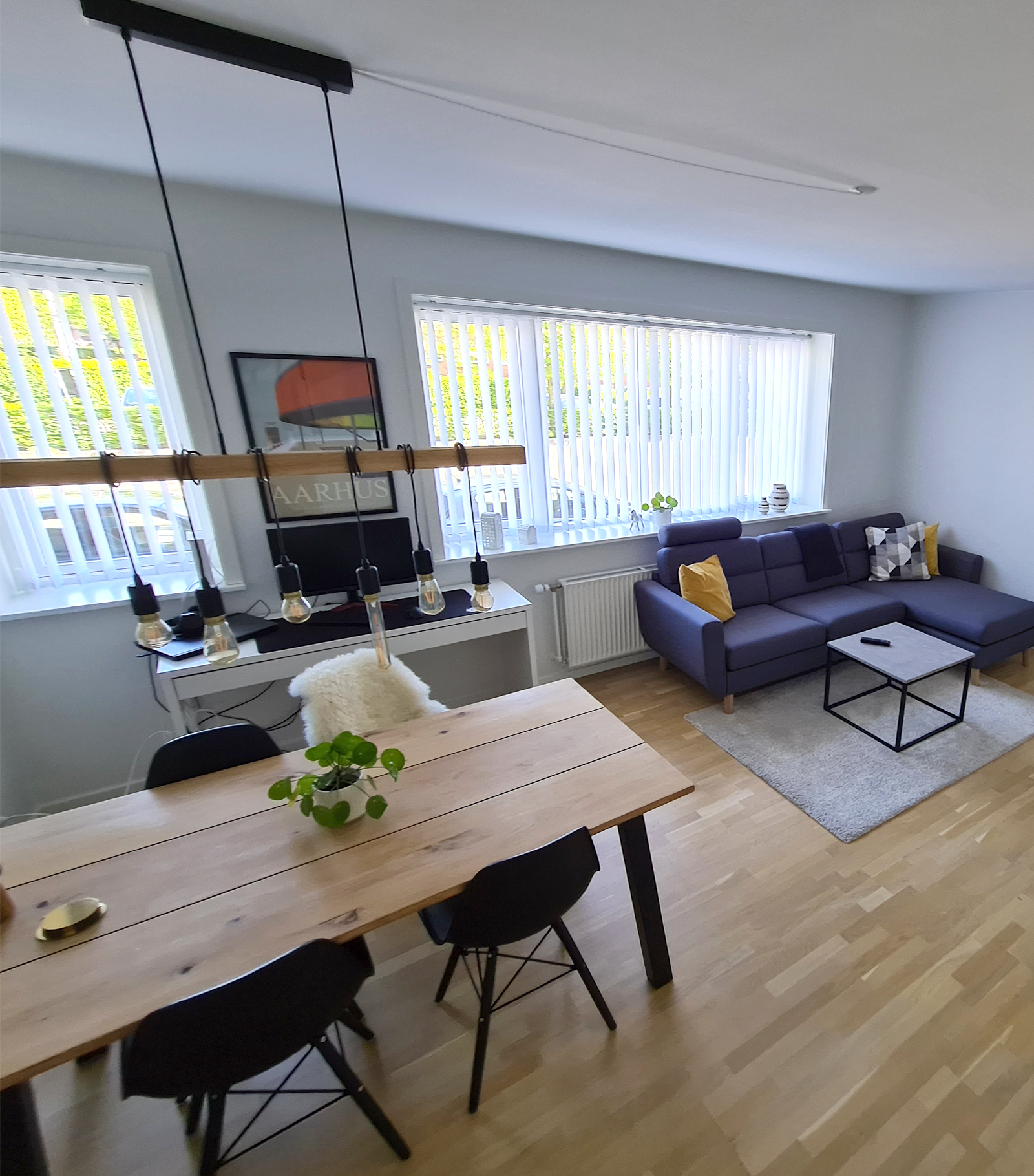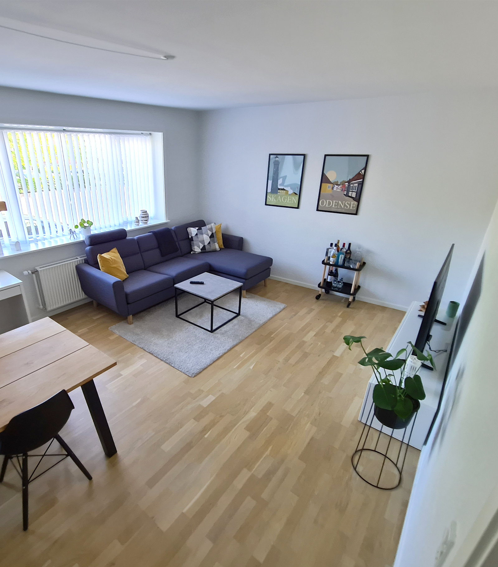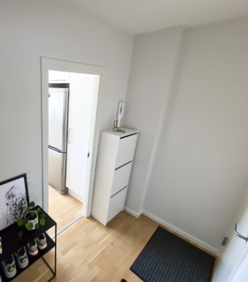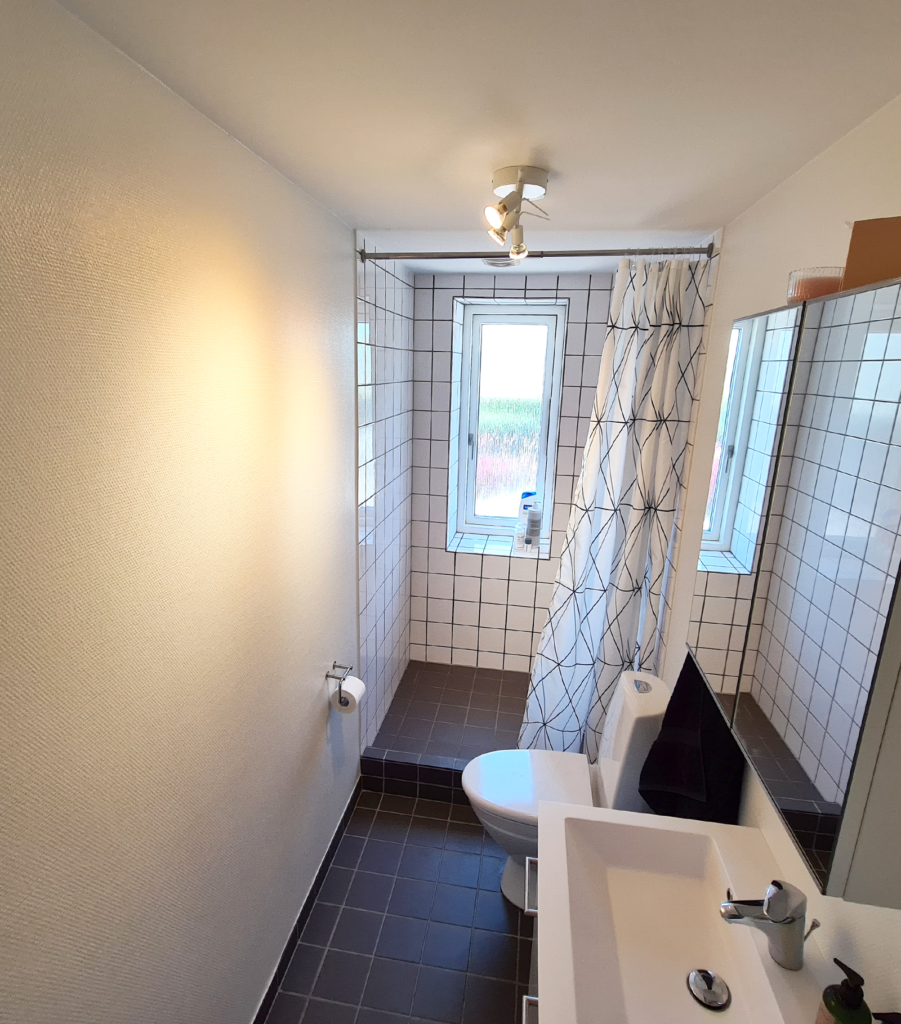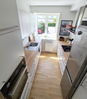 Vi træder ind i entréen, hvor der er god mulighed for ophæng af overtøj og sko. Fra gangen er der også adgang til badeværelset, som rummer en rigtig stor bruseniche – en stor bonus er vinduet, som gør det nemt at lufte ud. Vi går videre ind i den store stue som optager størstedelen af de 70 kvm, så der er fint plads til både spisebord og sofaarrangement. Soveværelset rummer højskabe og masser plads til en stor seng. Køkkenet er indbydende, med god bord- og skabsplads, som byder op til at kokkerere og øve sig i diverse madkundskaber. Alle lejlighedens vinduer er desuden lydisoleret, så du bemærker ikke lyden fra den hektiske hverdag uden for din hoveddør. Det er alt i alt, en meget fin lejlighed i god kvalitet. Hele lejligheden har fået en grundig overhaling med HTH-elementer, nye gulve og vægmaling.
