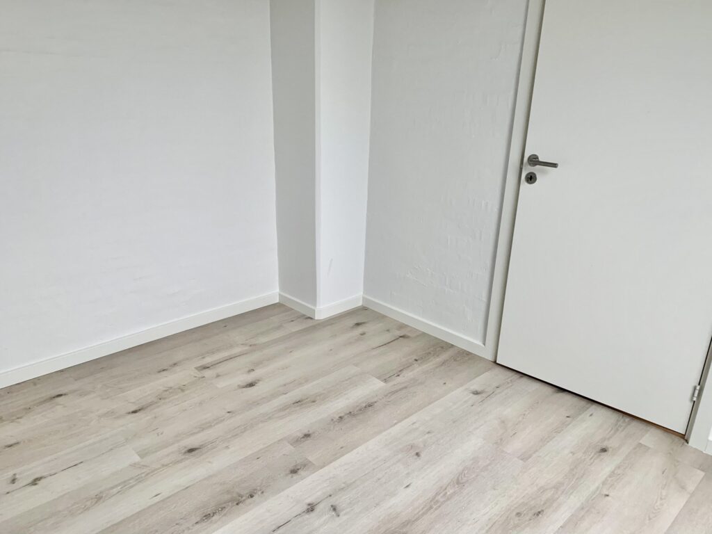Fra spisestuedelen af er der indgang til soveværelset, hvor man selv kan indrette med et klædeskab. Alt i alt en super flot lejlighed, der er totalrenoveret.