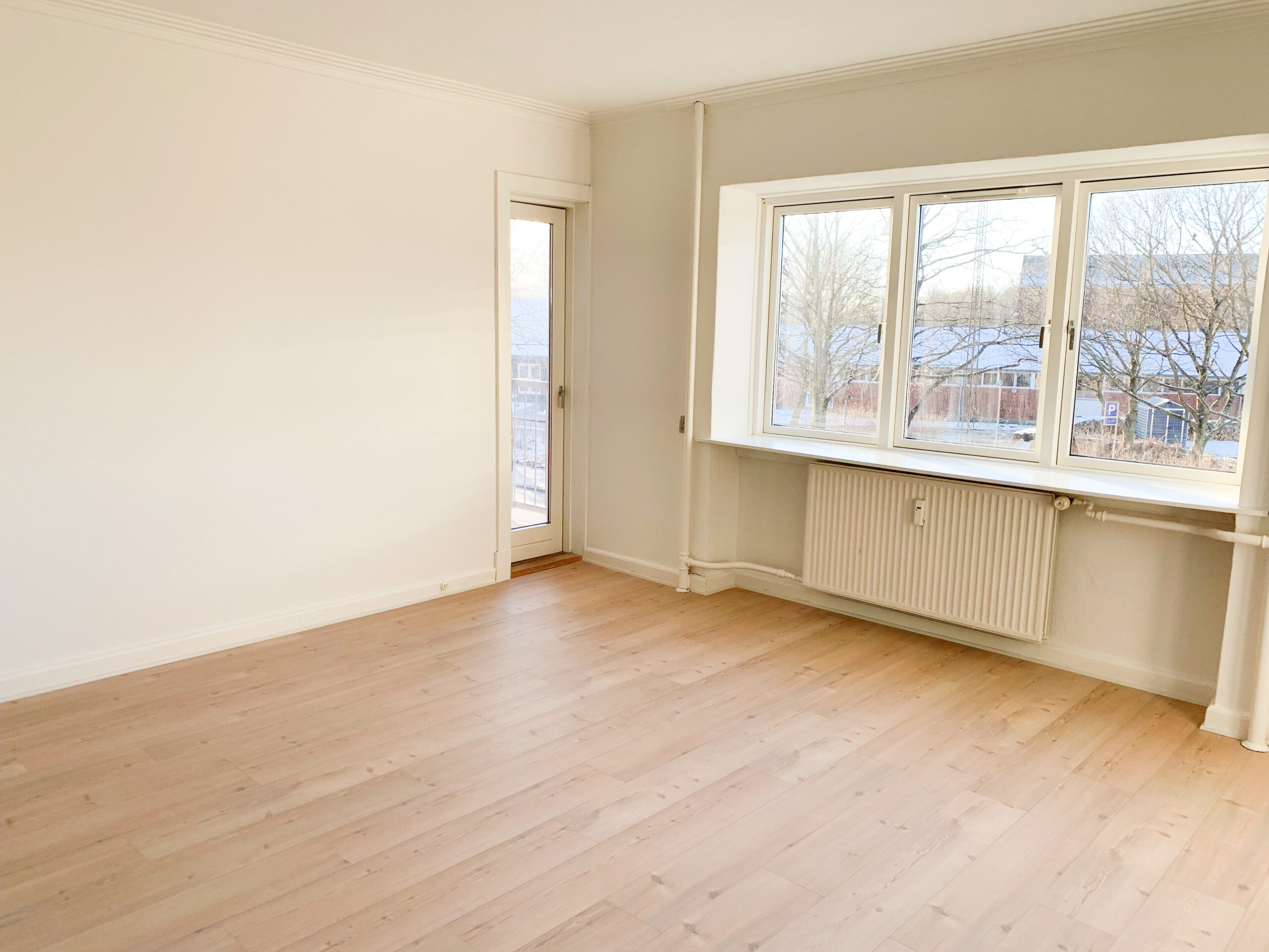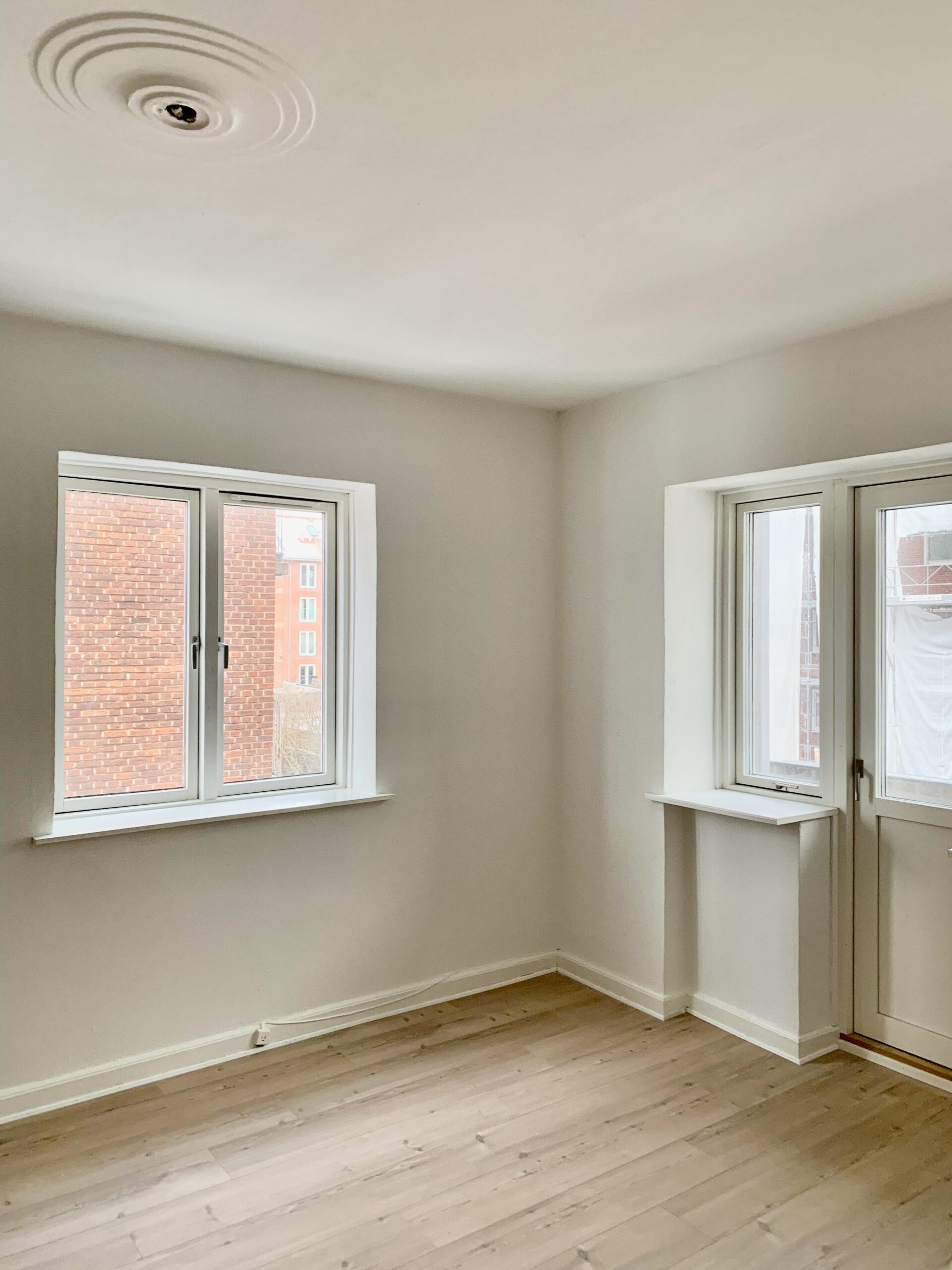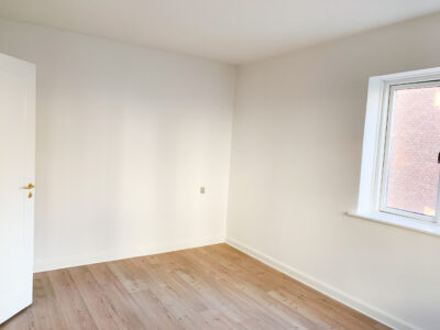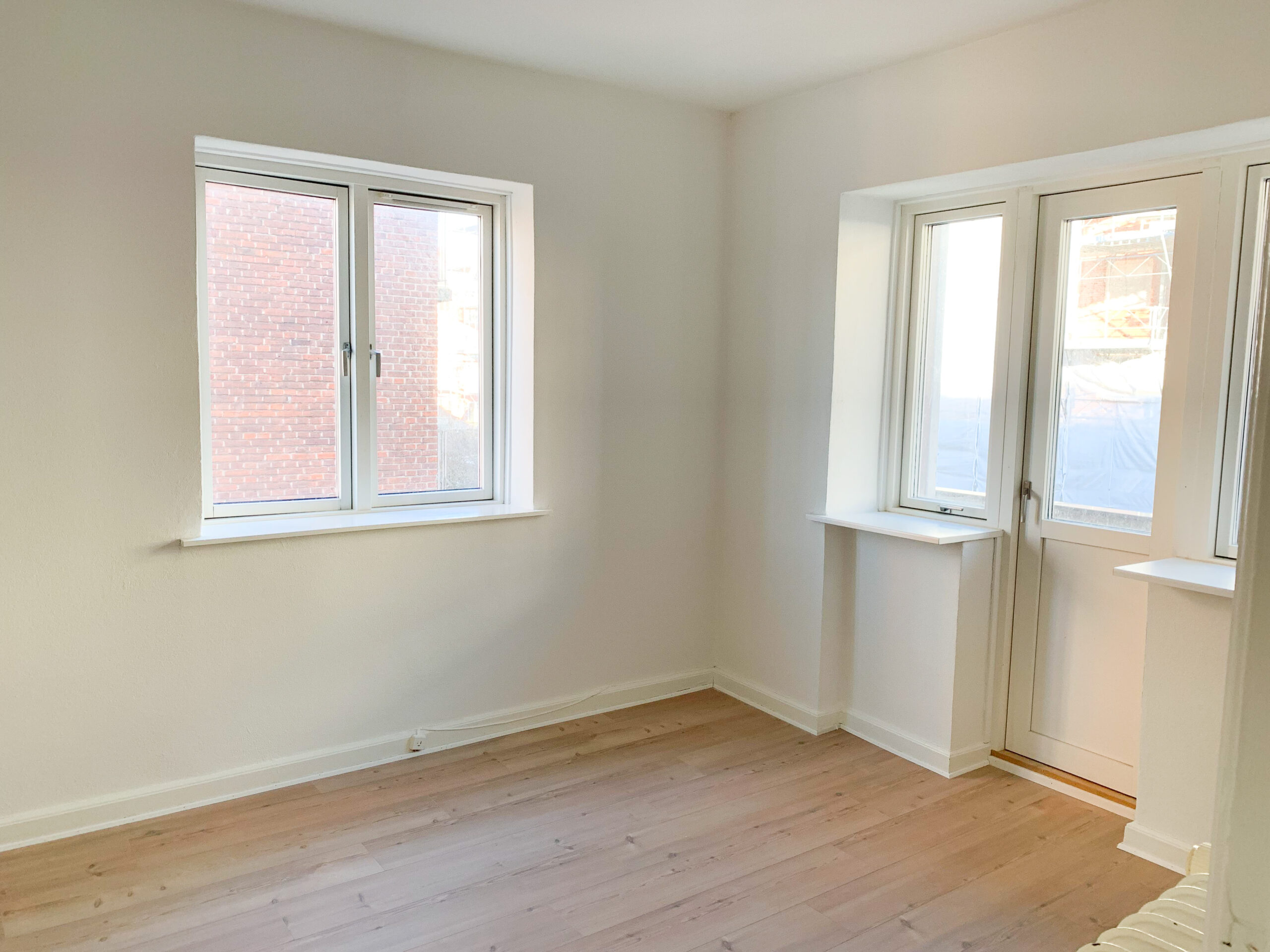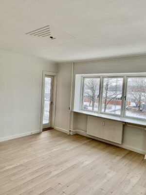 Soveværelset byder på generøs plads, der muliggør skabelsen af dit helt personlige tilflugtssted. Herfra er der adgang til en charmerende altan, der indbyder til frisk luft og byder på udsigt til baggården. Stuen fortsætter den imødekommende atmosfære med et imponerende vinduesparti, der lader rigeligt naturligt lys strømme ind, og som gør det enkelt at indrette rummet i overensstemmelse med dine præferencer og stil. Herfra er der ligeledes adgang til en mindre altan med udsigt ud over Vestre Fjordvej.