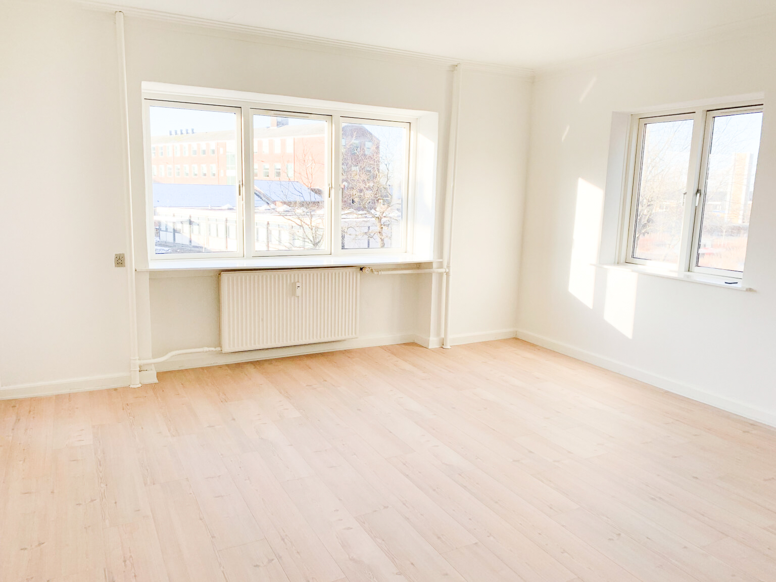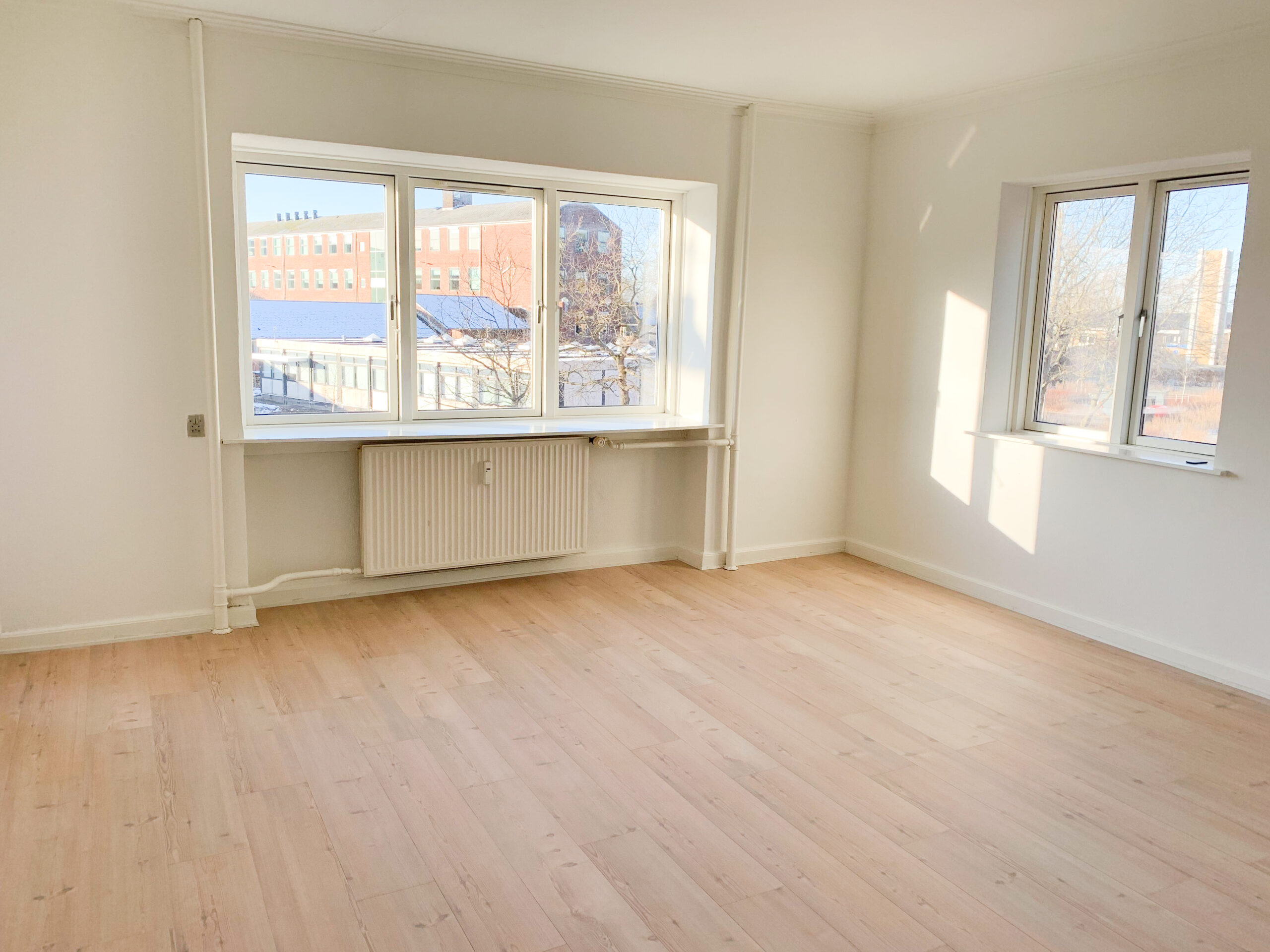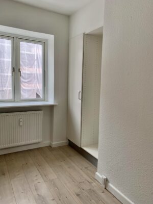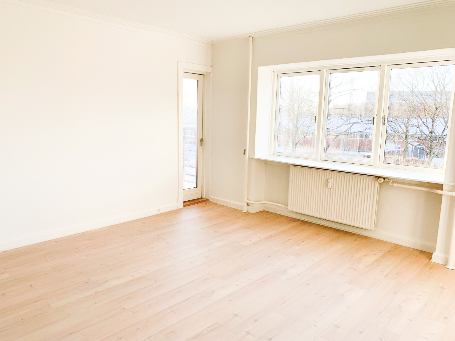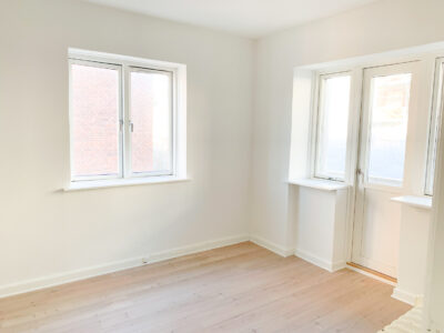 Soveværelset byder på generøs plads, der muliggør skabelsen af dit helt personlige tilflugtssted. Herfra er der adgang til en charmerende altan, der indbyder til frisk luft og byder på udsigt til baggården. Stuen fortsætter den imødekommende atmosfære med et imponerende vinduesparti, der lader rigeligt naturligt lys strømme ind, og som gør det enkelt at indrette rummet i overensstemmelse med dine præferencer og stil. Herfra er der ligeledes adgang til en mindre altan med udsigt ud over Vestre Fjordvej.