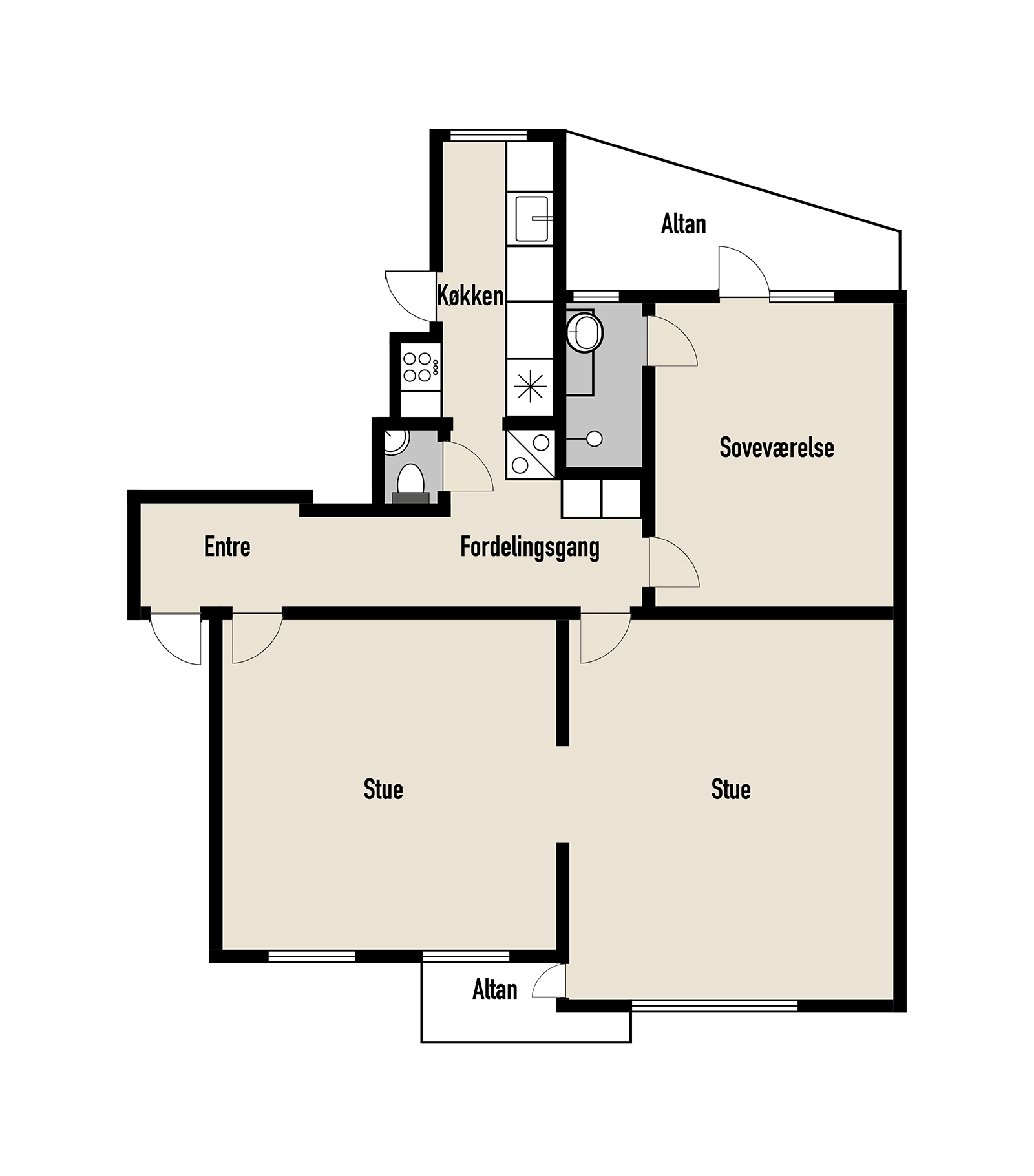 Begge altaner er store med plads til havemøbler, en nordvendt og en sydvendt.