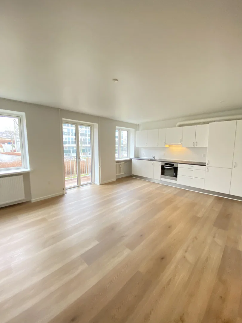 En rolig bydel med grønne områder som Vestre Fjordpark. Her er både familievenlige lejligheder og rækkehuse.